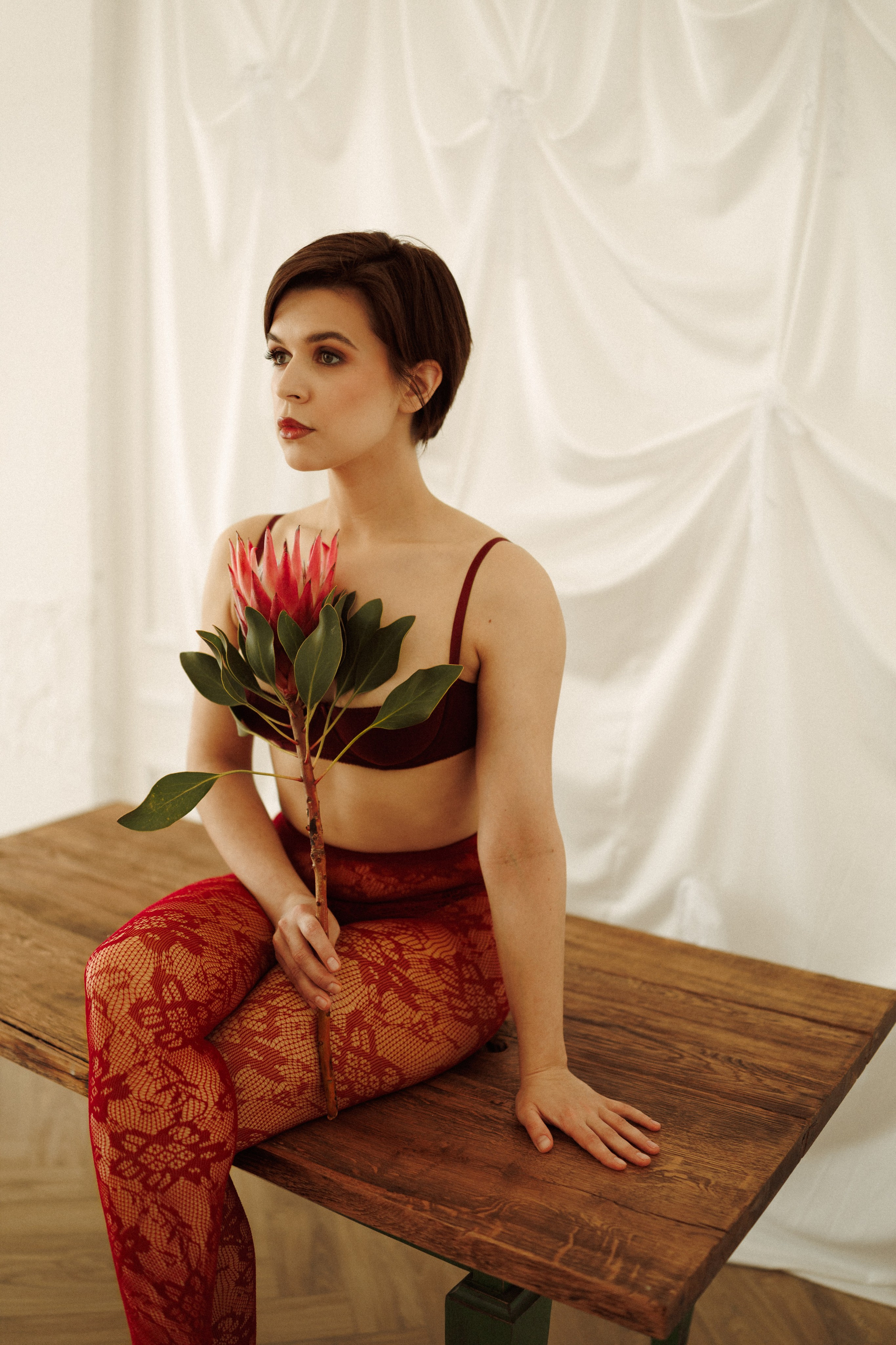 Весенняя фотосессия в студии с цветами